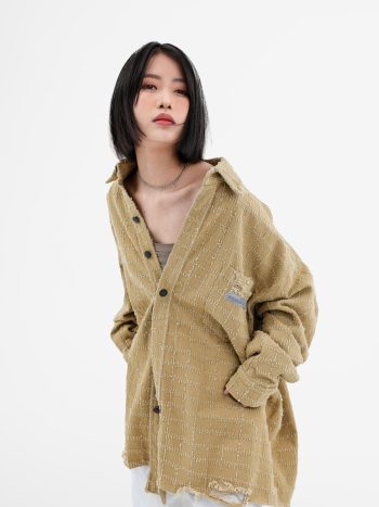 חולצת כפתורים אוברסייז קרועה